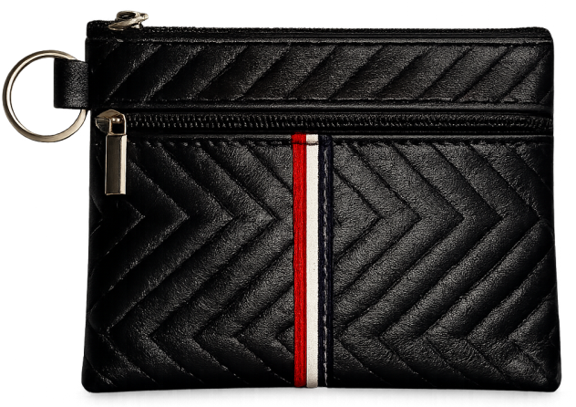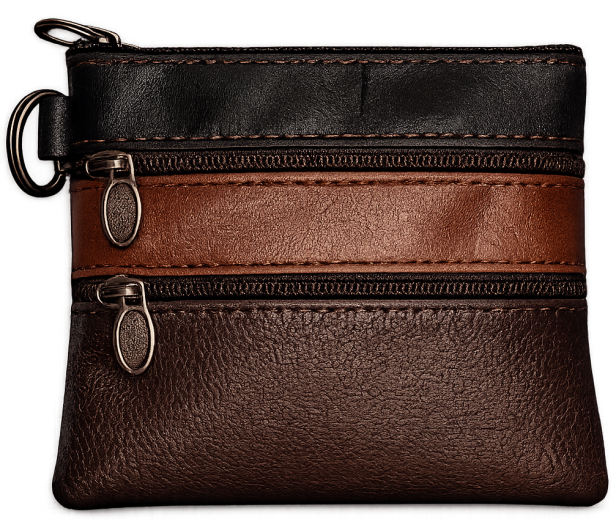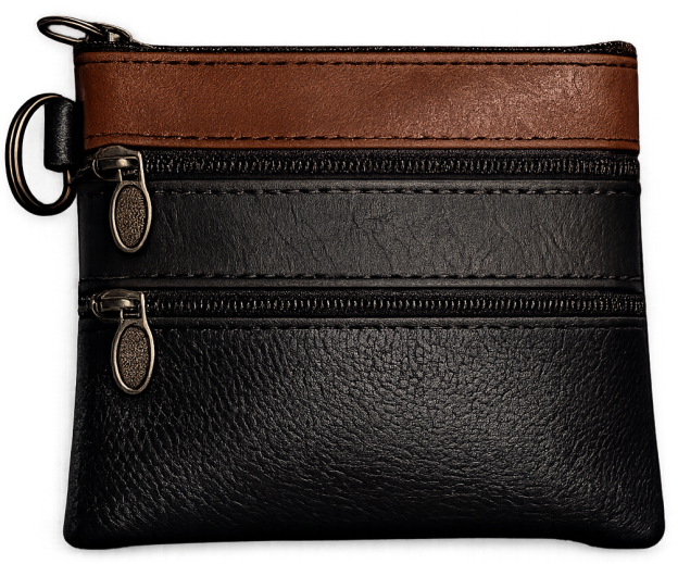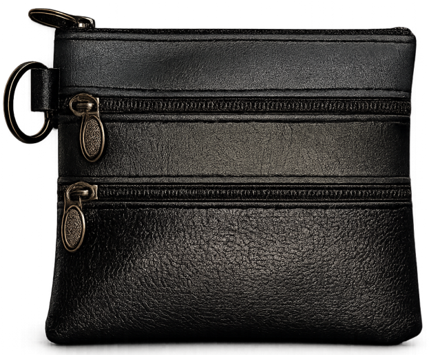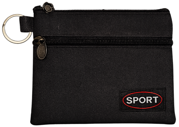 Πορτοφολάκι από μαλακή δερματίνη. Σε 4 διαφορετικά χρώματα. Με 2 διαφορετικές θήκες αποθήκευσης με zipper και κρίκο στο πλάι.