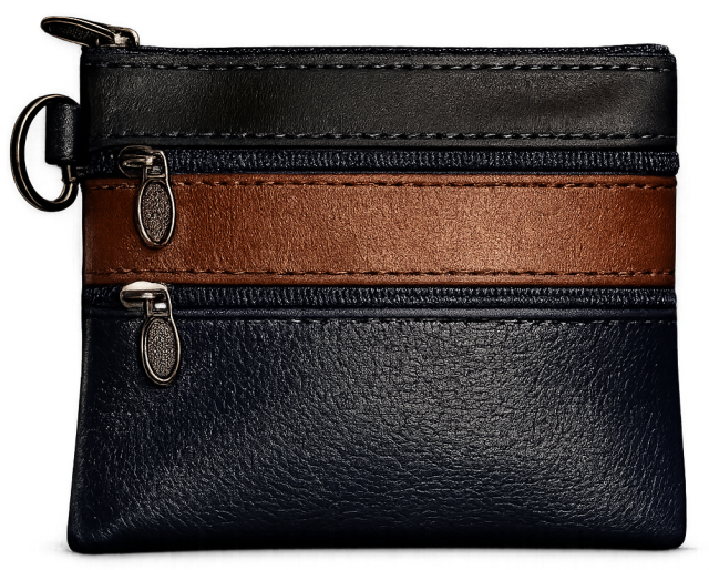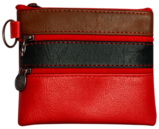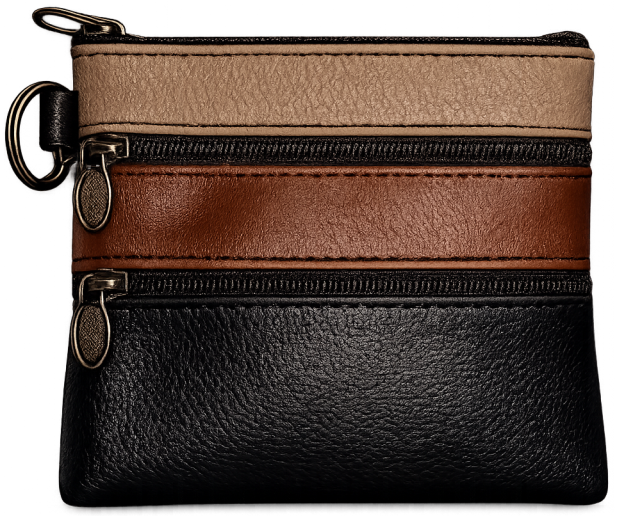 Πορτοφολάκι από μαλακή δερματίνη. Σε 4 διαφορετικά χρώματα. Με 3 διαφορετικές θήκες αποθήκευσης με zipper και κρίκο στο πλάι.
