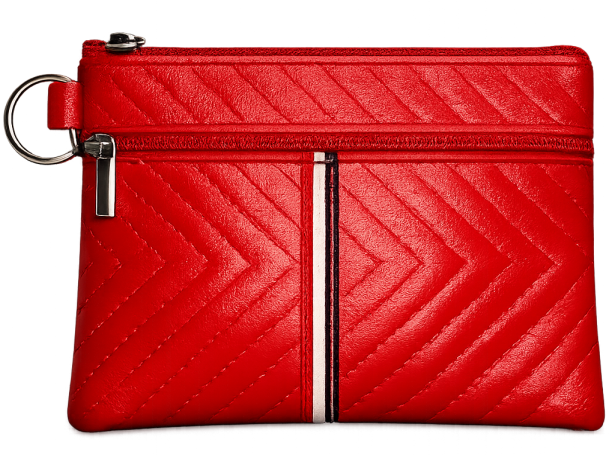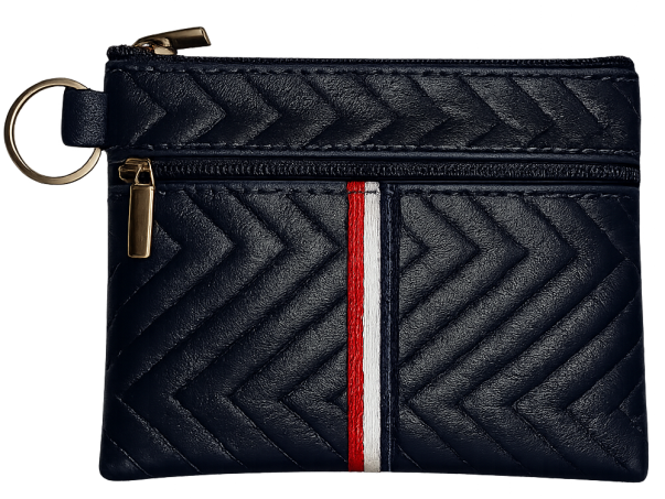 Πορτοφολάκι δερματίνι καπιτονέ. Σε 5 διαφορετικά χρώματα. Με 2 διαφορετικές θήκες αποθήκευσης με zipper και κρίκο στο πλάι.